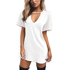 Inlefen Mini Abito da Donna – Girocollo, V Profonda, Manica Corta, Top da Abito, T-Shirt Lunga da Donna