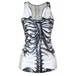 New da donna, colore: bianco, retro con stampa scheletro Tank-Canotta Club Wear-Pigiama per Lingerie, vestiti, taglia unica 8 10 12