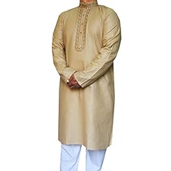 Maple Abbigliamento Uomo Kurta Pajama Ricamato in Seta Cotone Indiano Apparel