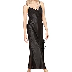hibote Ladies Donna Satin Long Nightdress Faux Silk Lace Lingerie Camicia da Notte Sleepwear