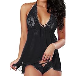 Ksera Women Sexy Lingerie Set Halter Babydoll Lace Sleepwear Dress Nightwear