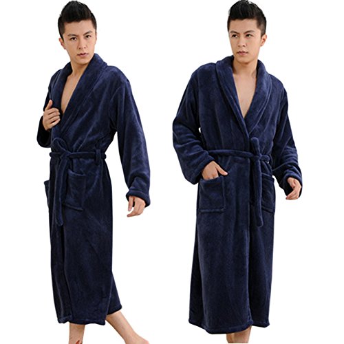 Men’s Super Soft Flannel Shawl Collar Sleepwear Pajama Robe Bathrobe