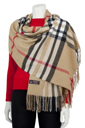 Ornella Venturi Sciarpa Stola a quadri in look alla moda cammello plaid, SC2020STD 197 x 63 x 0,5 cm
