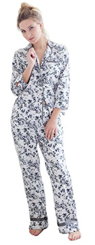 Cottonreal ‘Deco Floreale Nero & Bianco con Stampa Floreale Morbido 100% Cotone Set Pigiama