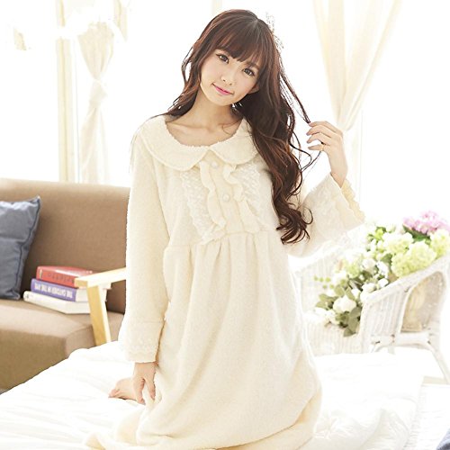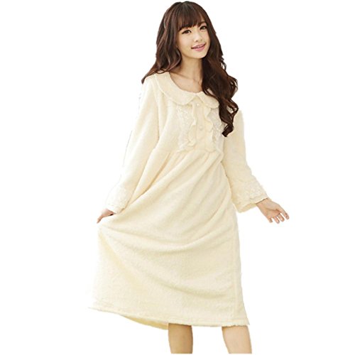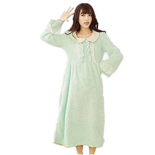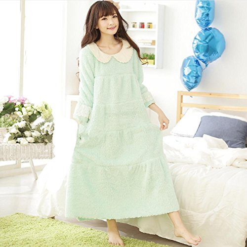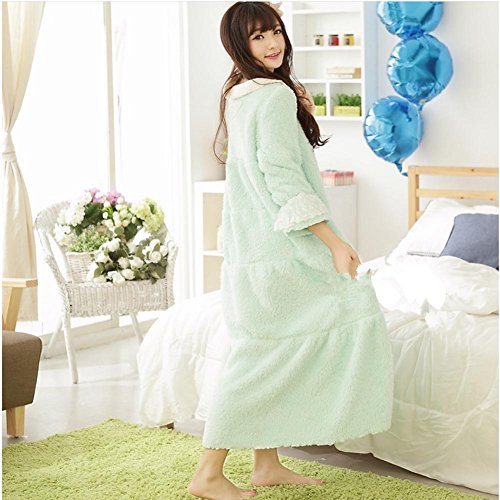 DMMSS Coral velluto a manica lunga – abito tinta colore Princess Bath Robe rotondo collo pizzo pigiama della signora