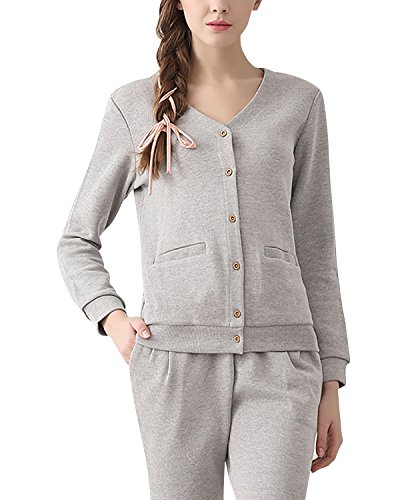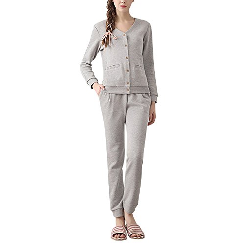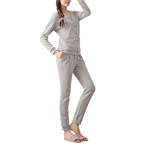 elegante, set pigiama morbido e caldo delle donne. Caratteristiche lunga superiore maniche con scollo a V e design sul frontale. Pantaloni lunghi con elastico in vita. Il tessuto misto cotone è davvero morbido e caldo aiuta a rimanere accogliente questo inverno. Perfetto come cute compleanno o regalo di Natale per la vostra famiglia prezioso e amici!
