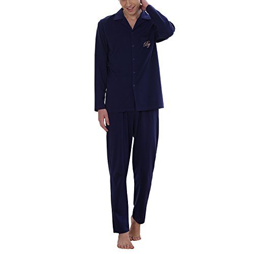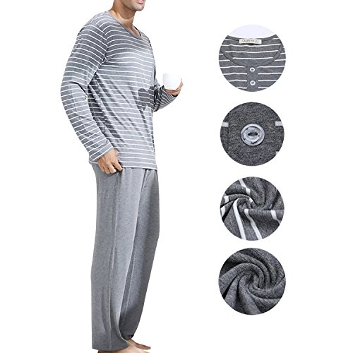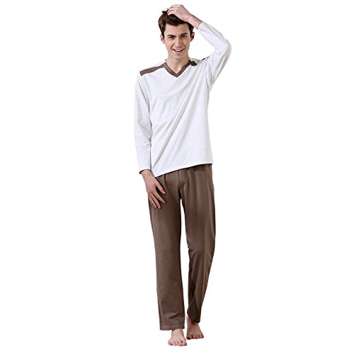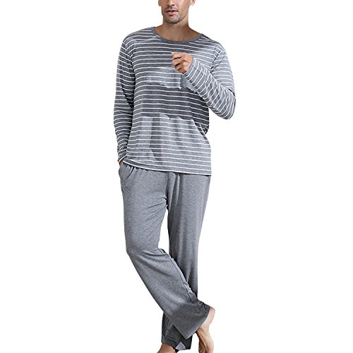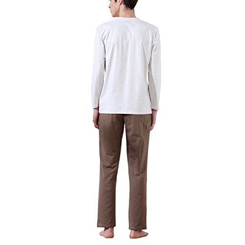 elegante, set pigiama morbido e caldo delle Uomo. Caratteristiche lunga superiore maniche con scollo a V e design sul frontale. Pantaloni lunghi con elastico in vita. Il tessuto misto cotone è davvero morbido e caldo aiuta a rimanere accogliente questo inverno. Perfetto come cute compleanno o regalo di Natale per la vostra famiglia prezioso e amici!