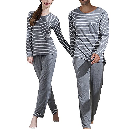 Dolamen Coppie Pigiama per Uomo, Signore Calda Molle Inverno Pigiama da Notte, 100% Cotone Uomo Pigiama Invernale, Manica Lunga Top & Pantaloni con Tasche