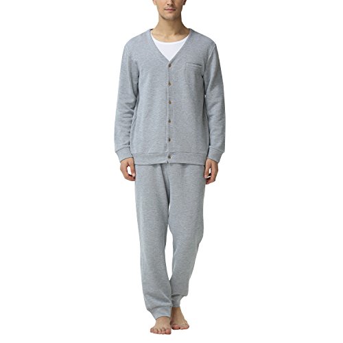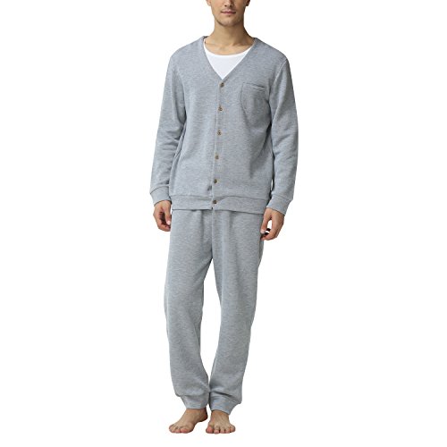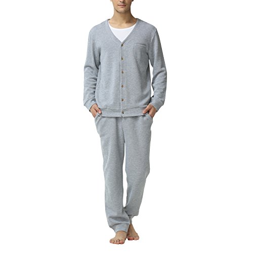 elegante, set pigiama morbido e caldo delle Uomo. Caratteristiche lunga superiore maniche con scollo a V e design sul frontale. Pantaloni lunghi con elastico in vita. Il tessuto misto cotone è davvero morbido e caldo aiuta a rimanere accogliente questo inverno. Perfetto come cute compleanno o regalo di Natale per la vostra famiglia prezioso e amici!