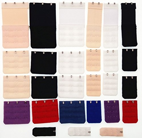 Set di estensori reggiseno contiene in totale 27 pezzi: 3 estensore reggiseno 1 gancio + 9 estensore reggiseno 2 ganci + 3 estensore reggiseno 2 ganci + 9 estensore reggiseno 3 ganci + 3 estensore reggiseno con elastico 3 ganci.
