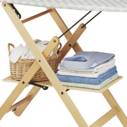 Staffa porta ometti. La struttura e’ in legno massiccio di faggio, i pianetti sono in truciolare ricoperto mentre il piano da stiro e’ costruito in multistrato di pioppo con fori traspiranti.