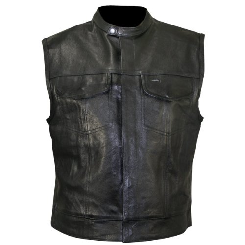 Gilet in Pelle Uomo Modello S.O.A. Con Colletto Gilet in vera pelle, da uomo, Modello S.O.A. con colletto. Uno dei Gilet più richiesti dai motociclisti per la sua Linea Classica e Semplice. Perfetto anche per aggiungere eventuali patch. Nel Dettaglio : -Premium in pelle nera; -Modello S.O.A. Con Colletto ; -Chiusura a scatto con bottone; -Colletto alla coreana con chiusura a scatto; -Due tasche sul petto e due interne a scatto con bottone; -Rivestimento non rimovibile in nylon; -Grande spazio posteriore per il fissaggio delle patch del proprio club; Perfetto per qualsiasi motociclista, da sfoggiare in occasione di motoraduni o per semplici giri in moto. Disponibile dalla taglia S alla 4XL.
