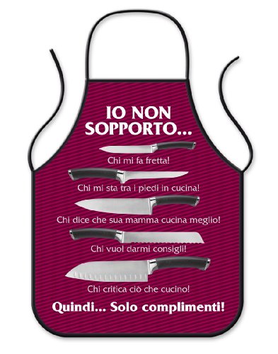 Grembiule da cucina in poliestere di cm.65×80.Questo spiritoso grembiule da cucina dalle dimensioni generose è il regalo divertente ed umoristico per un/a amico/a con l’hobby per la cucina. Interamente stampato con qualità fotografica riporta in maniera autoritaria e perentoria cosa non sopporta lo/la chef. Simpatico, allegro e colorato questo grembiulone è il regalo perfetto per ridere delle manie e pregiudizi del/la vostro/a amico/a cuoco/a.