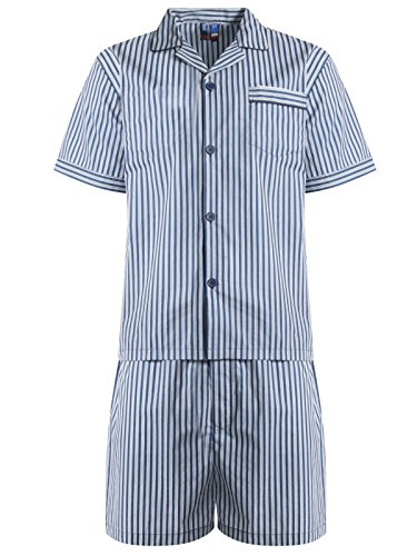 Harvey James pigiama a maniche corte e calzoncini in cotone filato tinto, colore blu chiaro M – XXL