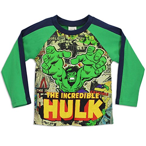 Pigiama dell’Incredibile Hulk. Gli appassionati della Marvel non potranno fare a meno di questo stupendo pigiama di Hulk! Il completo è costituito da una maglia a maniche lunghe e un pantalone lungo. La maglia presenta una stampa di Hulk su uno sfondo colorato in stile fumettistico completata da delle maniche lunghe di colore verde a contrasto e la scritta “The Incredibile Hulk” in rilievo. I pantaloni hanno una stampa in rilievo spezzettata, dei polsini sulla parte finale e due strisce di colore verde sui lati e sono completati da un logo della Marvel Comics.