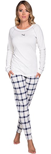 Pigiama da donna caldo e comodo, inclusa nel set una maglia monocolore e pantaloni con patern interessante. Le due tasche danno la possibilità di portare piccole cose. Sulla vita è cucito un comodo elastico. Il pigiama è fatto interamente di cotone di alta qualità e cotone naturale. Il cotone è uno dei pochi materiali che sono particolarmente adatti per la produzione di biancheria intima e vestiti che hanno un contatto diretto con la pelle. È morbido, confortevole, non allergenici e, soprattutto, permette al corpo di respirare. Perfetta anche per le pelli molto sensibili e inclini alle irritazioni. I colori visualizzati possono essere leggermente differenti, e dipendono dei parametri del monitor. Composizione: 100% cotone
