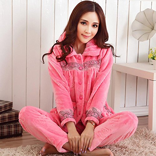 JIADONG Imbottito Si Adatta alle Signore in Autunno e Inverno Plus Dimensioni Corallo Vello Accappatoi Pigiama di Flanella, Pigiameria e Loungewear m l XL XXL XXXL