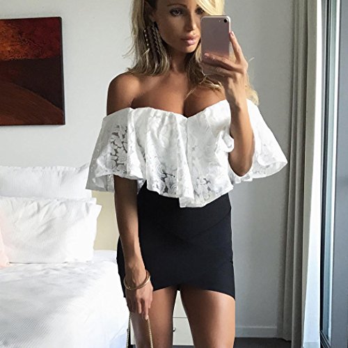 JiaMeng ❀ Pantaloni Siamesi, Tuta Vestiti di Onesies, Pezzo Sexy Pantaloni di Pizzo a Balze delle Signore Donne Bardot…