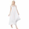 Jinyufeng Donne Lungo Camicia da Notte Collo Square è Pizzo Macramè alla Base Senza Maniche Bianco DK6212
