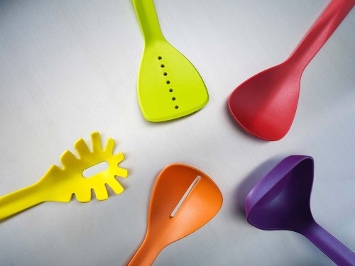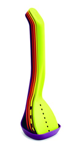 Il set si compone di un mestolo , un cucchiaione, un cucchiaione forato , un mestolo per spaghetti ed una paletta fritti.Ciascun componente è magnetico a livello del manico, ciò permette di mantenere gli utensili in piedi.