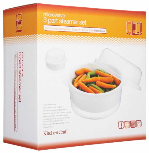 Kitchen Craft KCMSTEAMER Set Pentola da Microonde per Cottura al Vapore, 2.2 l, Bianco