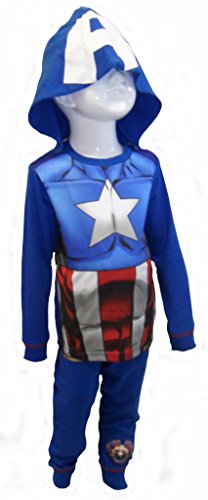 Fantastic pigiama Capitan America Style costume con cappuccio staccabile. Essi sono costituiti da cotone 100% e ha braccia lunghe maniche lunghe e pantaloni lunghi della gamba. Disponibile in: 2-3 anni (98cm) 3-4 anni (104cm) 5-6 anni (116cm) 7-8 anni (128 centimetri)