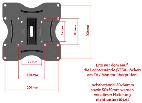Supporto monitor/TV conforme agli standard VESA: 75×75, 100×100, 200×100, 200×200