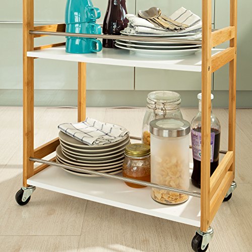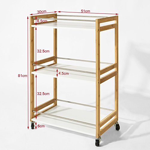 SoBuy® Carrello Cucina,Scaffale da Bagno, Carrellino salvaspazio,Mensole da Cucina, FKW32-WN(Blanco+natura/51 * 81 * 30cm),IT