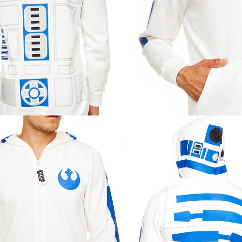 Il perfetto outfit per il tempo libero, quando R2-D2 smette di lavorare. Capo unico comodo, morbido e caldo con stampa di R2-D2 nella schiena. Stoffa leggera e comoda che accompagna i movimenti. Taglia unica da uomo: lunghezza totale : 177 cm; larghezza petto: 55 cm; lunghezza maniche: 68 cm; lunghezza gambe: 78 cm. Avvertenza: lavare a 30°C.