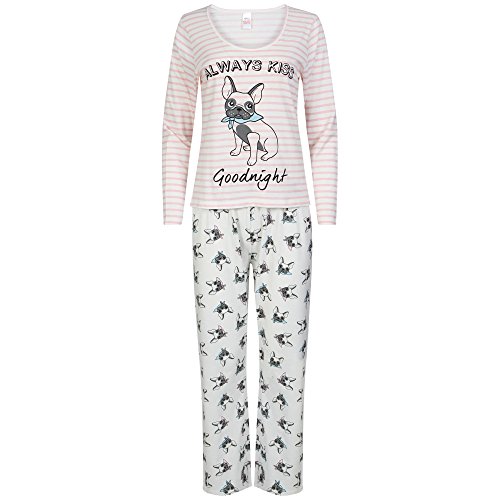 Pigiama da donna a maniche lunghe in jersey di cotone, motivo: uccello, bulldog francese o gufo, taglie: 42-44, 46-48, 50-52
