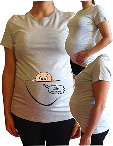 T-Shirt Lunga da Donna Ideale per Il Premaman. STO arrivando, Stampa Divertente- by tshirteria