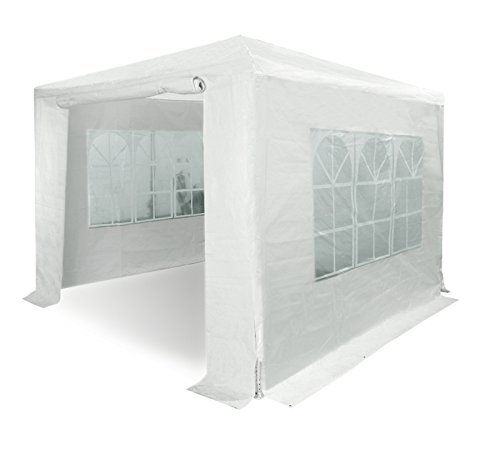 Le nostre Tende per Feste, facilissime da montare e con un prezzo imbattibile, ti giungono in una confezione completa di tutto ció che ti occorre per assemblarle. I pali sono fatti in acciaio verniciato a polvere di colore bianco e il tetto e le pareti sono in PE (polietilene). Il telo del tetto ha una densitá di 130gsm, mentre quello delle pareti ha una densitá di 120gsm.