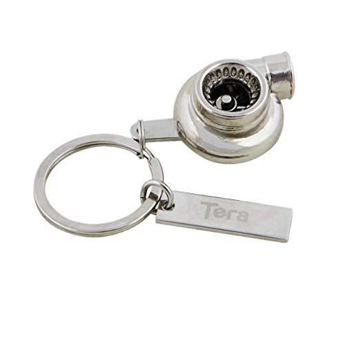 Tera® Keychain turbocompressore con rotazione ruota a pale portachiavi per auto (color Argento)