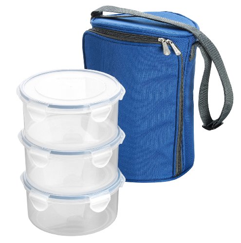 Tessuto poliestere alta qualita’ Inserto termico-isolante in alluminio Cinturino regolabile e tasca Completa di n.3 contenitori tondi l.0 8/l.1 5: in plastica resistente con guarnizione in silicone