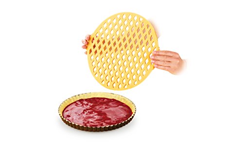 Ideale per ritagliare velocemente e senza sforzo il reticolo di pasta per ricoprire le crostate. Provvisto di un inserto removibile per trasferire con facilità il reticolo sulla torta