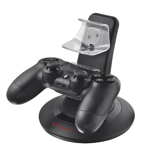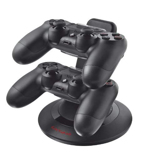 Per ricaricare simultaneamente fino a 2 controller originali della PlayStation 4, senza collegarli al sistema PS4Trust GXT 243 PS4. Tipo di caricatore: Interno, Compatibilità caricatore: Console portatile, Tipologia alimentazione: DC. Colore del prodotto: Nero. Dimensioni imballo (LxPxA): 260 x 90 x 210 mmPer ricaricare simultaneamente fino a 2 controller originali PS4. Alimentatore di corrente incluso: elimina la necessità di mantenere collegata alla corrente la PS4 per effettuare la ricarica. Per riporre e ricaricare i controller in un unico posto. Soluzione salvaspazio. (PST-19818)