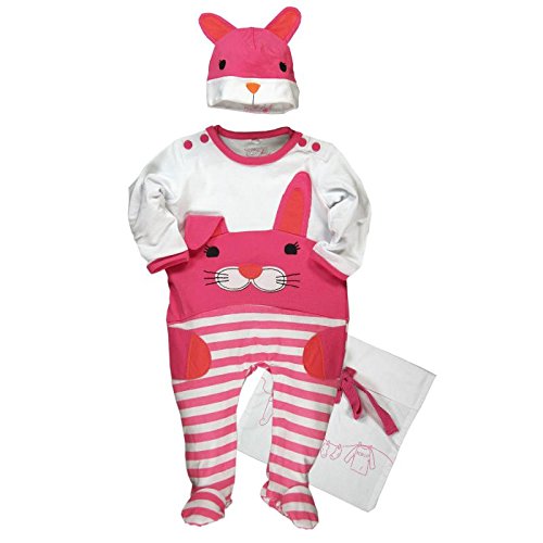 TUTINA 100% COTONE BIANCO E ROSA CON CONIGLIETTO.BOTTONCINI SULLE SPALLE E NELLE GAMBE PER FACILITARNE IL CAMBIO.FRESCO COMODO E OTTIMO NELLA VESTIBILITA’