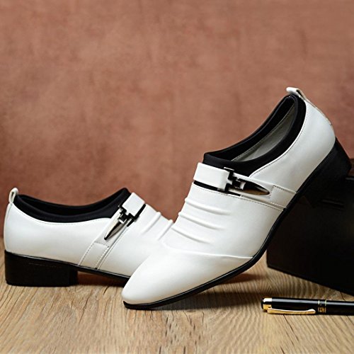 UOMOGO Scarpe Uomo Pelle, Stringate Brogue Derby Basse Elegante Sera Oxford Vintage Verniciata Bianco,Nero,Marrone 38-47