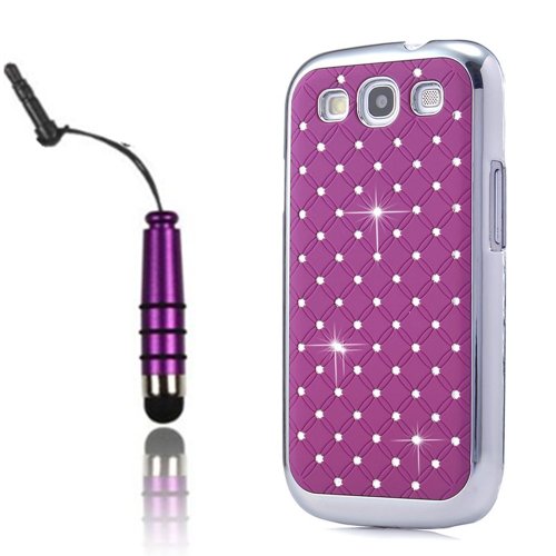 Vandot Luxury Hard Case Set Di Accessori Per Samsung Galaxy S3 SIII i9300 Sacchetto Protective Skin Custodia Rigida Di Scintillio Della Copertura Del Rhinestone Handmade 3D Star Bling Del Metallo Del Protettiva Bella Diamante Di Cristallo Copertura Dura Di Caso Di Caso Di Shell + Mini Penna Dello Stilo Di Tocco Dello Stilo Con 3.5mm Anti-Polvere Plug – purple porpora Per Cellulare