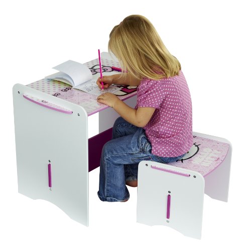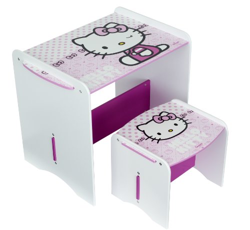 Bellissima Scrivania con Sgabello Hello Kitty Realizzata in resistente MDF Tutti gli accessori necesari inclusi per un semplice assemblaggio Misure 57hx40x50cm Misure sgabello 33x28x27cm Nuovi confezionati! Adatta dai 24 mesi in su
