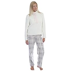 Ladies In Pile Pigiama Set. Grigio a quadri pantaloni con crema Pile Sherpa Top. Taglie S, M, L